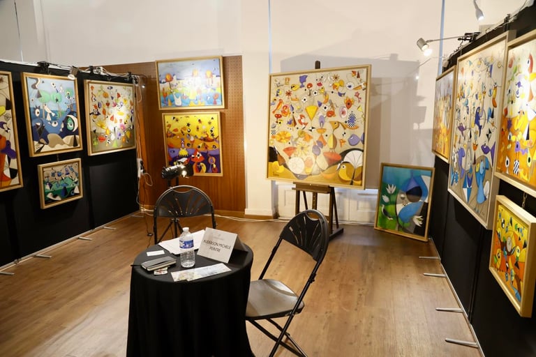 Découvrez ci‑dessous quelques images des expositions auxquelles Michèle Auderson a participé au fil des années, en galerie comme en salons d’art